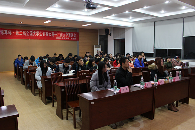 2016年12月26日,博尔杯第二届全国大学生创客大赛江南大学宣讲会完美落幕。创客大赛由中国人工智能学会主办,博耳电力控股有限公司、博耳智能科技(无锡)有限公司、CAAI智慧医疗专业委员会承办,国家人口与健康空军总医院平台中心、中国医疗保健国际交流促进会医学数据与医学计量分会协办。