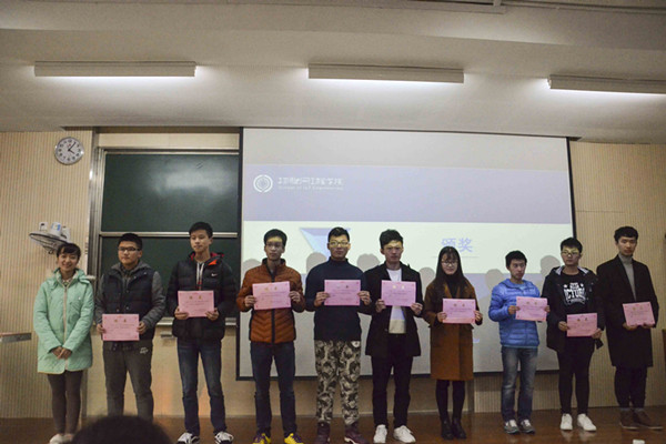 在随后对2015-2016学年第二学期学业辅导员活动成果的总结中,进行了“优秀学业辅导员”、“学业奋进奖”的颁奖,各位获奖代表上台发言。“优秀学业辅导员”代表通信1501班的余正义同学结合上学期学业辅导的经验和同学们交流了担任学业辅导员期间的心得体会;“学业奋进奖”代表计科1402班的尚佳友,就如何实现GPA从2.8到3.6的飞跃分享了其间的心路历程,并诚挚表达了对学业辅导员的感恩。学生代表们的精彩发言赢得了现场阵阵掌声。