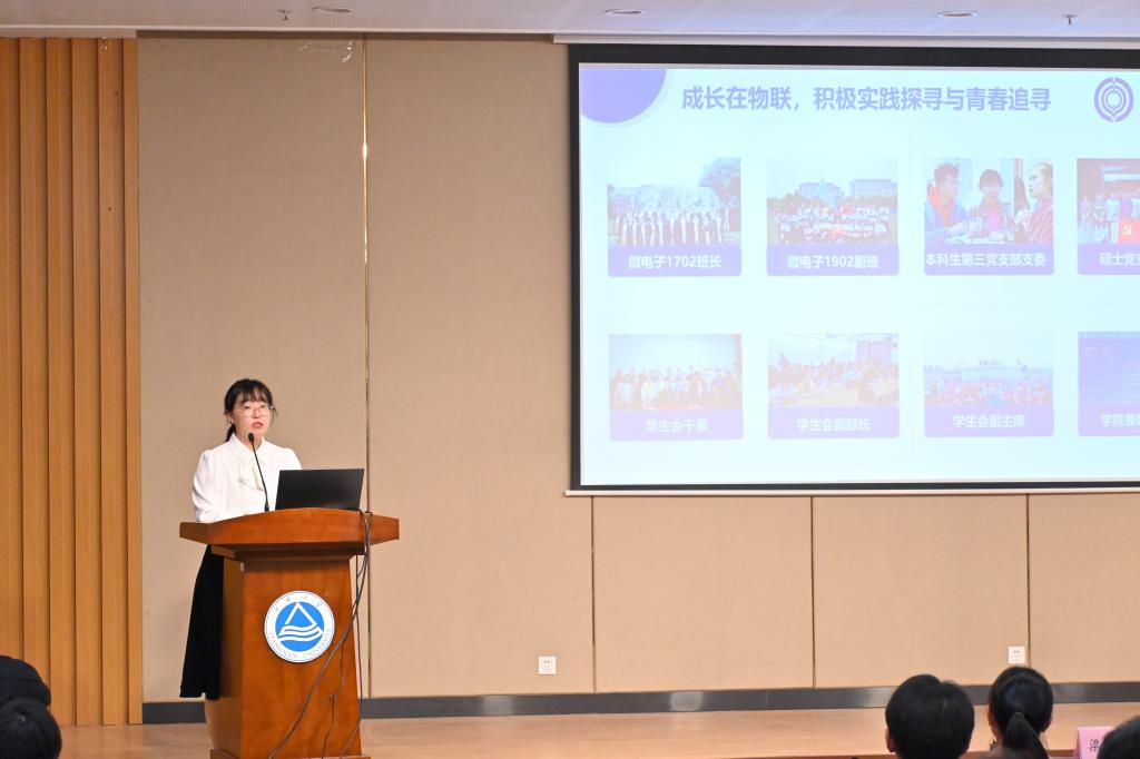 2023年“物联之星”评选活动在图书馆305报告厅举行。校学生工作部副部长蒋洁,校研究生工作部正科级干部汪洁,学院党委书记耿向阳、党委副书记兼副院长孔丽丹、副院长梁峻阁出席活动并担任评委,学院全体辅导员及300余名物联学子共同观看。