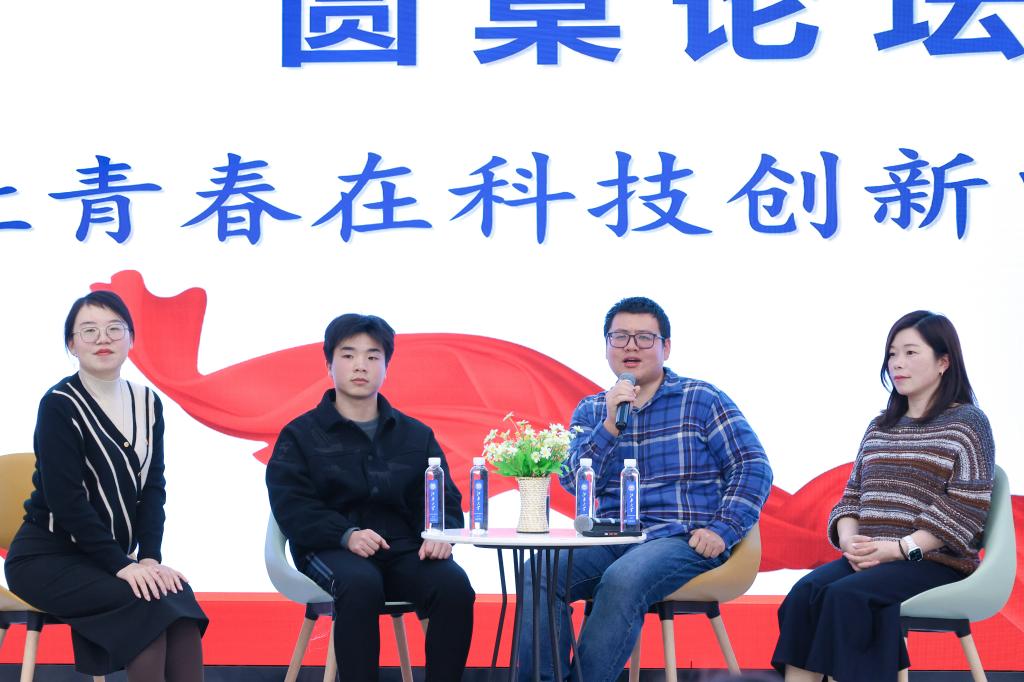 开营仪式结束后,举行了“让青春在科技创新中闪光”为主题的圆桌论坛。物联网工程2004班朱文青以“热爱与坚持”为题,分享了他所在的智能车俱乐部上下同心,在没有最优解、不设上限的智能车竞赛道路上携手并肩、接续奋斗的难忘经历。梁峻阁以“担当与奋进”为题,用鲜活而生动的事例讲述半导体传感器件与集成电路研究团队科技创新的动人故事。来自宽禁带半导体电路与器件团队的李杨老师围绕“突破与超越”,对当下国内半导体制造面临的困境、发展趋势进行分析与思考,勉励同学们要有敢为人先的创新精神,潜心学习专业知识,练就扎实的基本功,为国家科技创新贡献自己的力量。交流互动环节,同学们纷纷就科技热点、学涯规划、就业困惑等方面进行踊跃提问,分享嘉宾们精彩的解答赢得了现场阵阵掌声。
