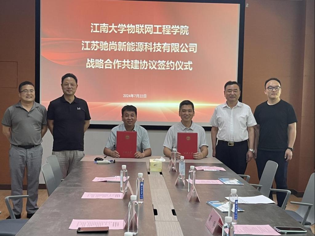 和江苏驰尚新能源科技有限公司签订战略合作共建协议,其他与会人员共同见证签约。