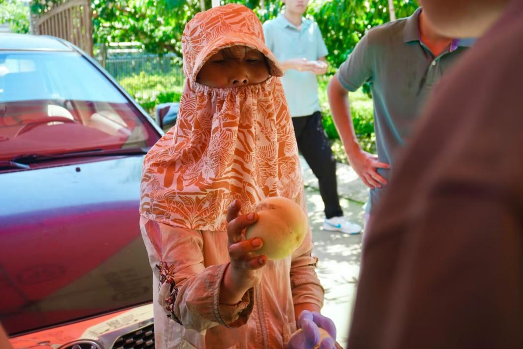 实践团成员与当地果农交谈