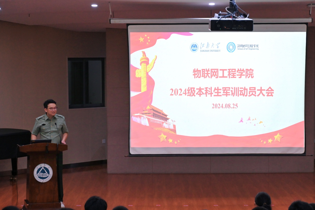 沈滔从军训背景、军训目的、军训时间、日程安排以及安全问题等方面介绍了此次军训的整体安排,让新生们对军训期间的训练任务有了更清晰的了解,并表示辅导员将与全体同学同心同行,共同完成本次军训任务。