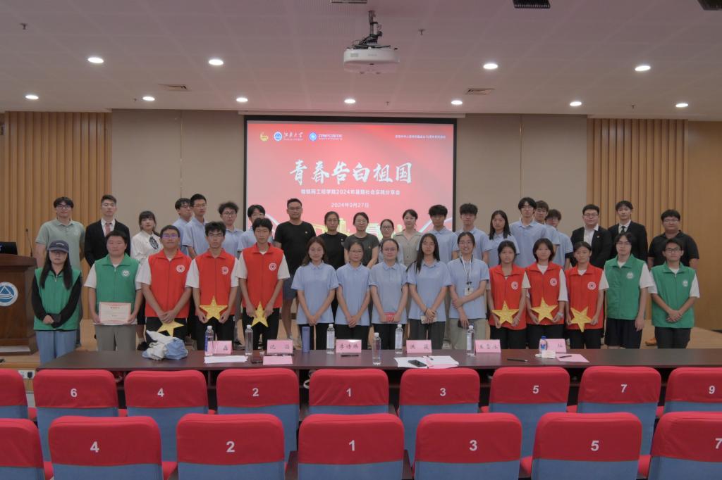 学工办主任兼分团委书记洪筱,学工办副主任李诗炜,辅导员王雪冰、张圆、曾磊、李灿、沈滔,暑期社会实践团队代表及2024级本科新生参加活动。