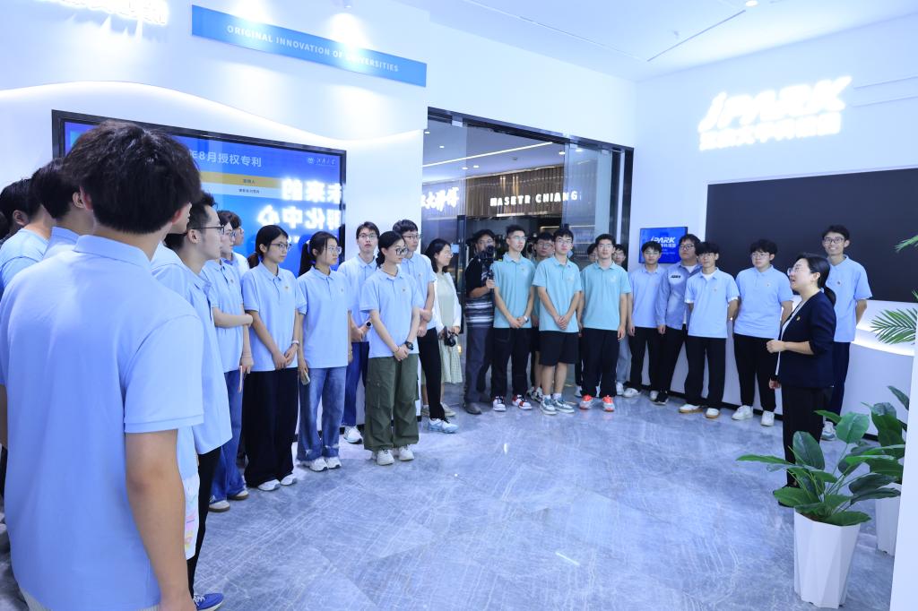 听企业发展,感受创新力量。在张翼的带领下,师生一行参观了位于江南大学国家大学科技园的展厅,详细了解了科技园的发展历程、业务领域、发展成果及未来发展规划。园区企业的前沿技术与创新产品,让师生深切感受到科技创新的强劲动力与广阔前景。张翼提到,江南大学国家大学科技园是校地合作共建的大学生创业孵化示范园区,旨在依托江南大学学科优势,推动创新创业人才培养,服务于无锡市大学生、中高层次人才创业就业。她指出,企业的发展秉持创新导向,以智能化技术为核心驱动力,不断前行并赋能自身,同学们更应如此。她鼓励同学们要勤于学习、善于思考,敢于拓宽视野、追求卓越,努力为祖国的创新智造贡献力量。