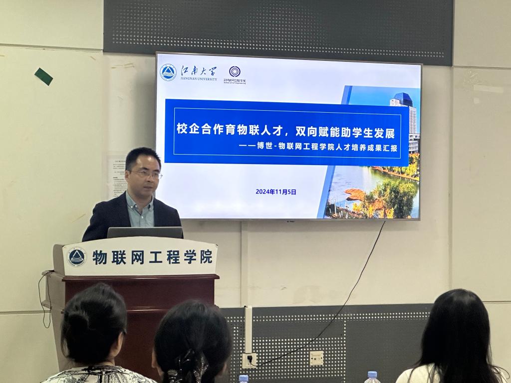 来校参观交流环节,陶洪峰对博世公司一直以来对学校、学院的教育事业大力支持表示感谢,并介绍了学院情况和与博世公司合作的项目成果。他表示,作为全球最大的汽车零部件供应商和世界最具创新技术的公司之一,博世公司持续创新产品,不断提升服务,以实际行动践行能源节约和环境保护;同时,时刻心系国家和行业发展,倾情相助教育事业,让我们真正感受到了博世的济世情怀、国际视野和社会责任感。从重点资助家庭经济困难学生完成大学学业到设立海外学习奖学金,鼓励学生积极参与国际交流,开拓视野;从设立科创团队奖学金,积极鼓励学生团队合作,勇于突破,参与科研创新活动到设立“博动未来”创新挑战赛、“博世杯”系列学科竞赛以及公益科普教育活动,鼓励学生参与科技创新、竞赛实践和社会服务,这些工作都彰显着博世公司对教育事业的赤诚芳心,对江南大学的鼎力支持,对莘莘学子的竭诚助力。