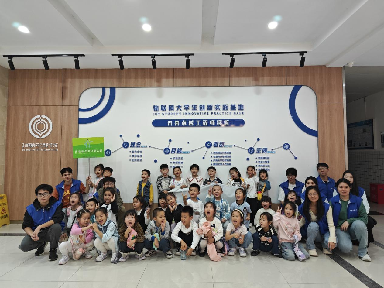 活动当天,无锡经开和泽幼儿园的师生们早早地来到了江南大学七曲桥进行签到和合影。随后,在大学生创新实践基地党支部党员的带领下,师生们参观了巅峰国际