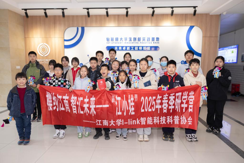 3月30日,由江南大学教职工和校友子女组建的“江小娃”研学实践营走进江南大学,在烂漫春光中开启了一场集知识、实践与梦想于一体的研学实践之旅。这场融合知识探索与实践体验的春日之约,不仅让青少年感受到樱花盛放的校园美景,更深度体验了前沿科技的魅力。