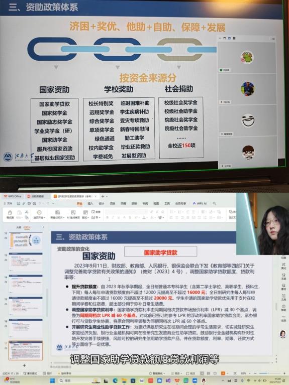 线上宣讲,恰似一座架于方寸屏幕间的 “连心桥”,以灵活之态打破时空阻隔,以高效之能传递政策温度。团队定期组织线上研讨会。通过屏幕共享,成员们清晰地展示政策要点和流程图解。依照国家资助体系的框架,他们详细解析各类帮扶政策的申请条件,逐步说明相关流程,致力于将抽象的政策条文转化为通俗易懂的语言和清晰的指引,确保每位成员都能透彻理解各项资助政策。