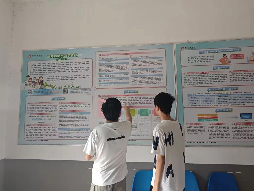 队员们还主动联系街道办事处,在社区便民服务中心与即将进入大学的学生开展座谈。他们认真听取每个学生的实际困难和担忧,并借助现场张贴的政策海报,详细介绍助学贷款的申请条件、流程和还款方式等关键信息,将复杂的政策内容转化为容易理解的说明,帮助学生在入学前全面了解资助政策,减少经济顾虑,为大学生活做好准备。