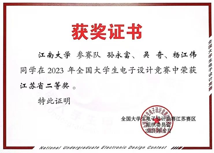 在竞赛上,学院的智能车、电子设计、西门子三大赛事上,都有孙永富的身影。通过优异的表现,他有幸获得了本科生国家奖学金、无锡市三好学生等荣誉,这些荣誉不仅是对他过去努力的肯定,更是激励他在未来的道路上继续砥砺前行,追求卓越的光芒。