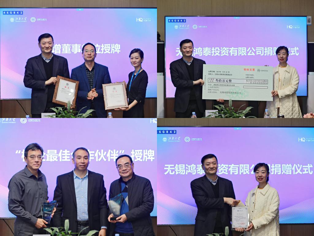 董事会章程》规定,大会对董事会成员进行了增补,新增无锡鸿泰投资有限公司董事长潘旭翔为副董事长、华勤技术股份有限公司人力资源副总裁阮泉为董事,堵国成为新增董事会成员颁发聘书。谢林柏为无锡信捷股份有限公司、英飞凌科技(无锡)有限公司颁授“校企最佳合作伙伴奖”,感谢两家企业十数年的持续合作和助力支持。