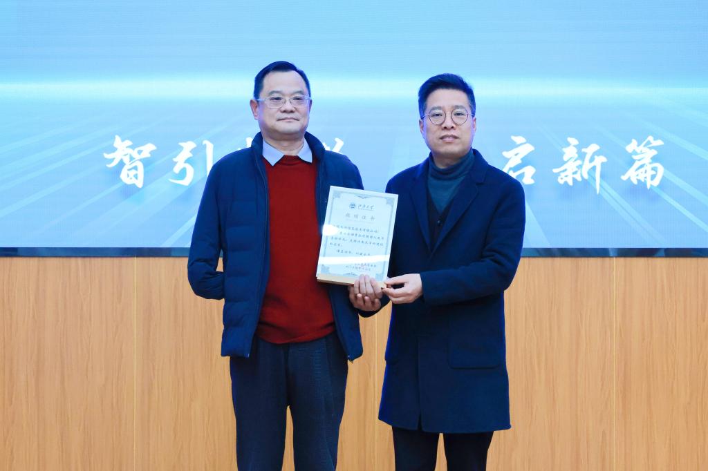 会上,周云龙向捐赠单位颁发捐赠证书,栾小丽为新增董事单位授牌,倪松涛为巅峰国际 与无锡市德宁节能科技有限公司合作成功申报的2024年江苏省研究生工作站进行授牌。